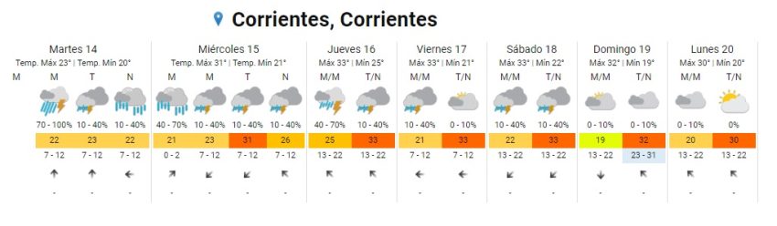 La alerta amarilla por tormentas fuertes de hoy rige hasta esta siesta para Bella Vista, Concepción, Corrientes, Empedrado, Mburucuya, Saladas y San Roque.
