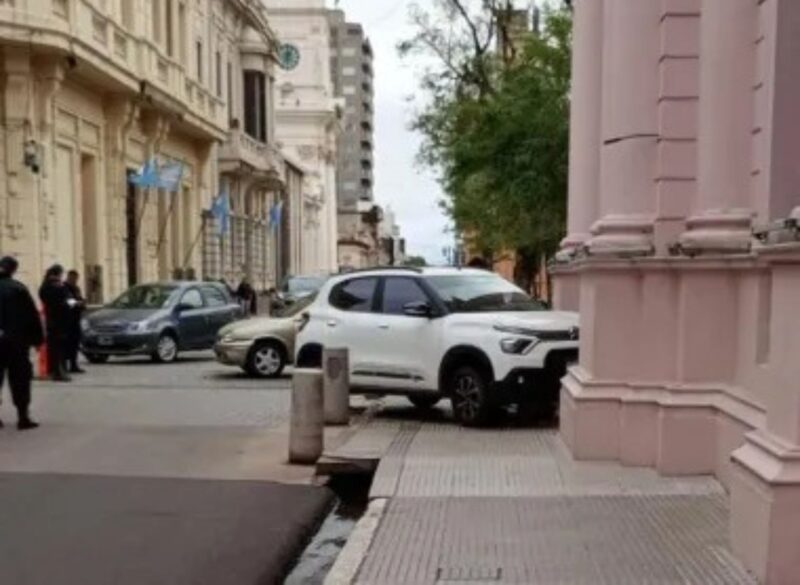 Una camioneta impactó contra el edificio de Casa de Gobierno tras protagonizar un choque.