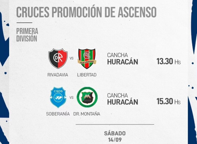 El juego de primera hora será protagonizado por Rivadavia ante Libertad. Cotejo que comenzará a las 13.30. Después en el cierre de la jornada Soberanía se medirá con Dr Montaña, aproximadamente a las 15.30.