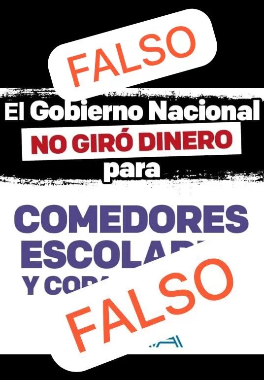 La desmentida vino después de que, en las últimas horas, trascendieron en las redes sociales publicaciones que afirman que Nación no giró dinero dinero para los comedores escolares y que por ese motivo se dejó de proveer ese servicio que reciben miles de niños correntinos cada día.