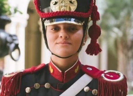 La esquinense Aldana Fernández es granadera y uno de los rostros visibles en la custodia de la Casa Rosada en Buenos Aires, donde diariamente ingresa el presidente Javier Milei, según informó Actualidad Esquina.