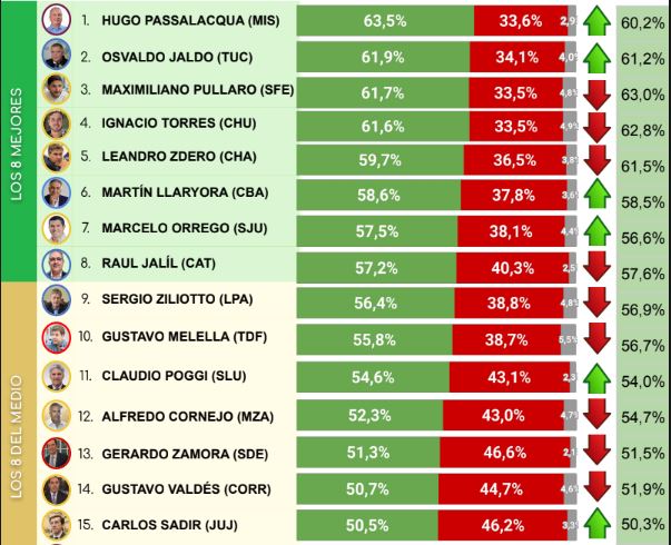El gobernador Gustavo Valdés se ubicó en el puesto 14, con un 50,7 por ciento de imagen positiva y 44,7 de imagen negativa. En la medición anterior, el mandatario correntino había registrado un 51,9 por ciento de imagen positiva.