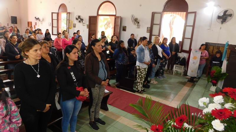Al dirigirse a las embarazadas, les dijo «ustedes desde el primer momento de la concepción ya van contagiando la fe, van transfiriendo lo bueno, hermoso, bello y lo santo. Es tan estrecho el vínculo del bebé con la mamá, que todo lo que pasa por el corazón de la mamá se contagia y qué bueno es esto de que puedan contagiar desde el seno materno esta dimensión religiosa».
