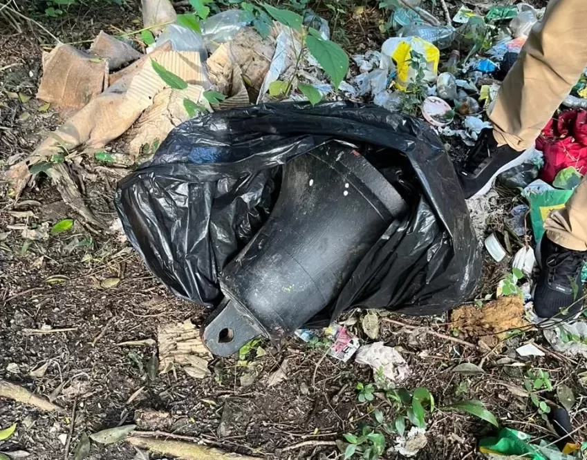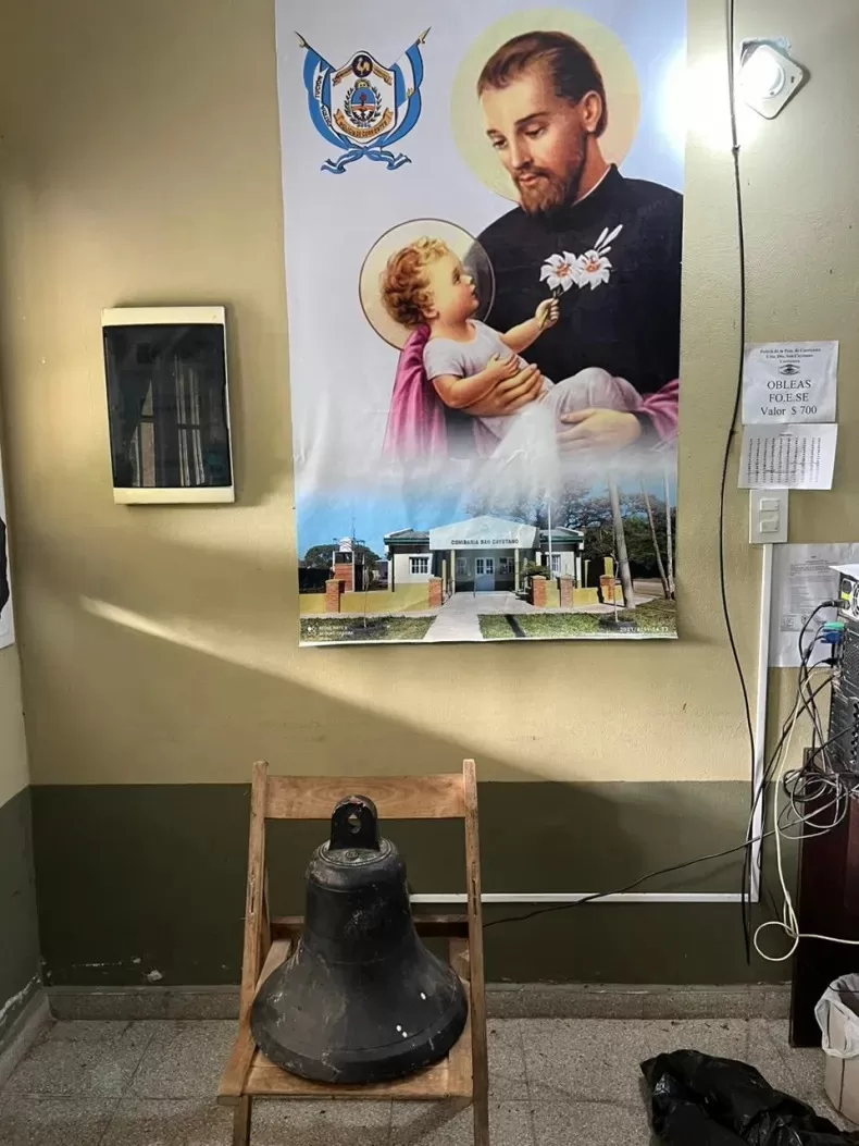 De igual forma en horas tempranas del día de hoy, luego de un amplio rastrillaje realizado en la zona de monte y cañadas se logró hallar una bolsa de consorcio que contenía la campana de la capilla.
