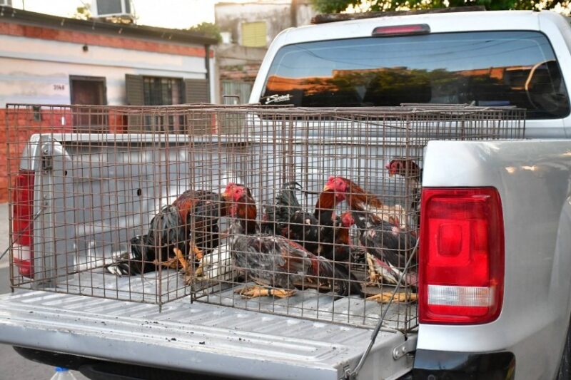 La acción se activó tras recibir el aviso ciudadano. Luego de las investigaciones y la presentación de la denuncia judicial, emitieron la orden de allanamiento que confirmó la práctica ilegal. Dentro del domicilio se encontraron jaulas, elementos de traslado y una estructura que funcionaba como ring de peleas, con gallos que presentaban claros signos de maltrato.