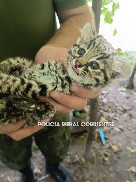 Una pequeña cría de gato montés fue rescatada ayer durante el mediodía en una vivienda del paraje Yribucuá, en la localidad correntina de Concepción, luego de que una familia la encontrara en el fondo de su casa.