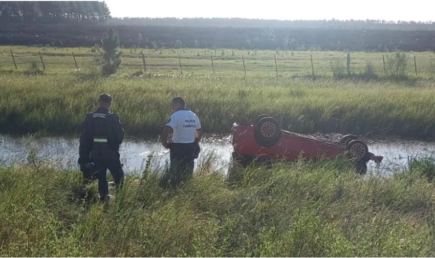 Dos hombres terminaron con lesiones al protagonizar un siniestro vial sobre Ruta 120 a la altura del kilómetro 41, en Corrientes. El coche en el que circulaban terminó dado vuelta en un zanjón, luego de despistar tras el reventón de un neumático.