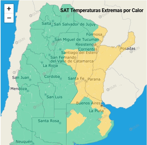 Hoy, las provincias de Entre Ríos, Misiones, Santa Fe y Corrientes se verán afectadas por las altas temperaturas. Esta advertencia se extiende también hacia el sureste de Chaco, el este de Formosa y el sureste de Santiago del Estero.