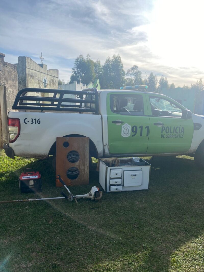 La sorpresa llegó cuando los uniformados rastrearon el paradero de los objetos hasta el cementerio municipal. Allí, dentro de un nicho abandonado que funcionaba como depósito, encontraron una cocina a leña tipo hogar, un grupo electrógeno y una desmalezadora, todos los elementos que habían sido sustraídos. Los objetos se hallaban apoyados sobre un ataúd.