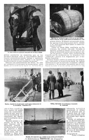 Destacaron, por ejemplo, que los delincuentes actuaron con segura complicidad de empleados del banco. También, que sólo encontraron una parte del botín, que se calculaba en «200.000 pesos moneda nacional», una suma muy elevada para esa época. «Efectuado el golpe, Godoy y su cómplice, José Aquino, vinieron a Buenos Aires, trayendo alrededor de 50 mil pesos en billetes, escondidos entre una barrica de naranjas, una lata de dulce de sidra y rellenando las hombreras de una bata perteneciente a una hija de Godoy que les acompañaba y que actualmente está presa e incomunicada», detallaron sobre el secuestro.