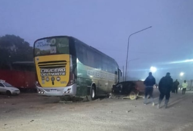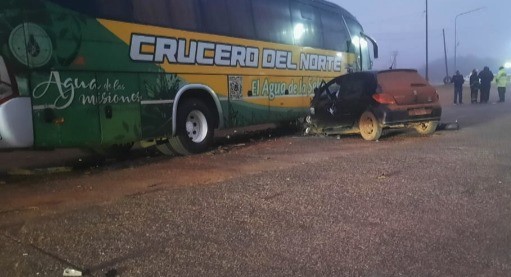 La colisión fatal ocurrió alrededor de las 6 de la mañana de este domingo, en el acceso a Santo Tomé. Por motivos que la Policía aún investiga, un automóvil negro marca Peugeot impactó de lleno contra un colectivo de larga distancia de la empresa Crucero del Norte.