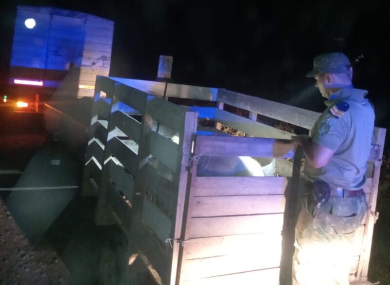 Según informaron, el personal policial detuvo la marcha de un camión Ford F-350, el cual era conducido por un hombre de 34 años. Al inspeccionar el vehículo, se constató que en un carretón de madera eran transportados una chancha y 17 lechones.