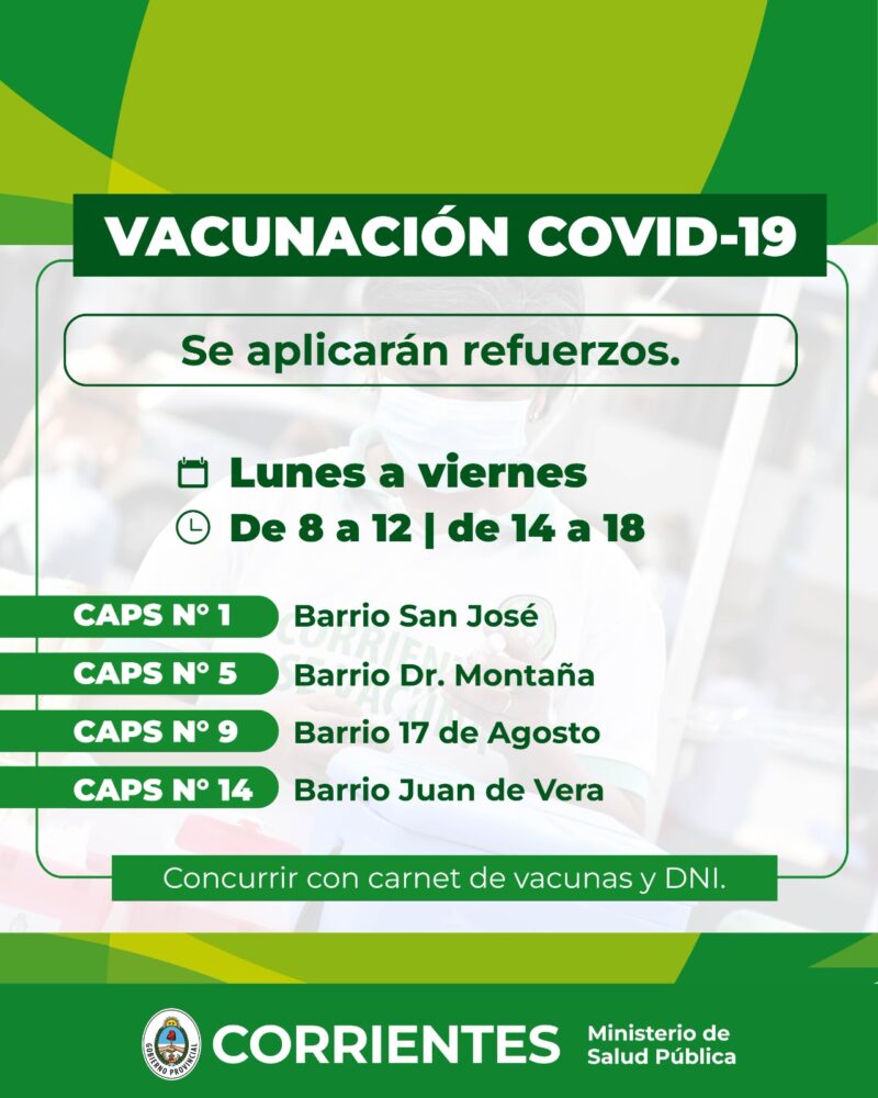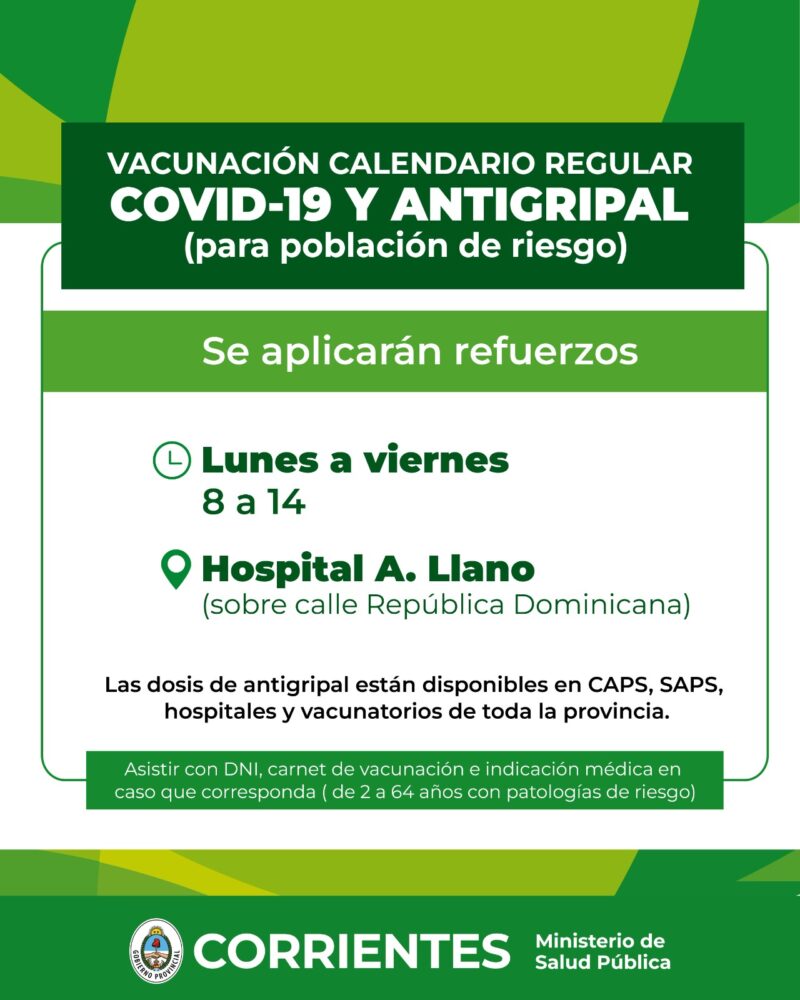 En la capital, las dosis antigripales están disponibles en los Centros de Atención Primaria de la Salud (Caps), en las Salas de Atención Primaria de la Salud (Saps) de la Municipalidad de Corrientes y en los vacunatorios de los hospitales Ángela I. de Llano y pediátrico Juan Pablo II. Mientras que, en el interior las dosis están disponibles en los distintos vacunatorios.