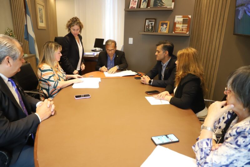 El ministro de Salud Pública, Ricardo Cardozo, firmó este jueves un convenio con la presidente del Rotary Club Corrientes Sur, Lucía G. Ruíz Díaz. En otro momento de la mañana, firmó otro convenio con autoridades de la Facultad de Ciencias de la Salud y Bienestar de la Cuenca del Plata (UCP).