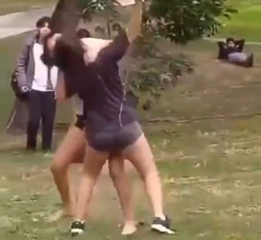 Una salvaje pelea entre dos alumnas del colegio Nacional y de la escuela Centenario de la ciudad de Corrientes ocurrió durante la siesta del lunes en el parque Cuá y fue captada en video.