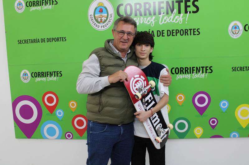 El secretario de Deportes, Jorge Terrile recibió a Santino Salinas, el joven correntino que representará a la Provincia en los Juegos Nacionales Urbanos a realizarse del miércoles 23 al domingo 27 en el predio de Tecnópolis, en Buenos Aires.