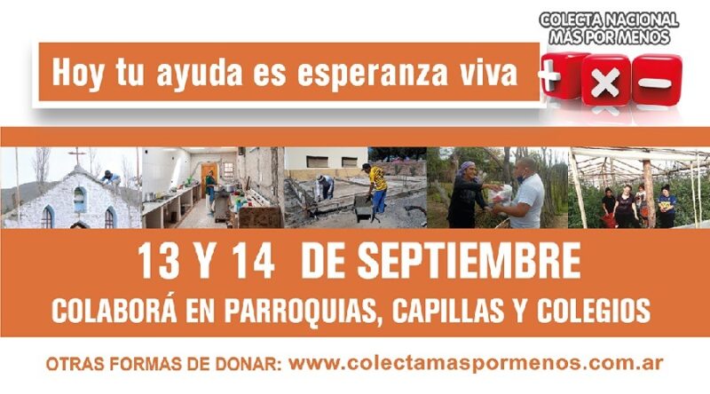 La 56ª edición de la campaña solidaria está prevista para los días 13 y 14 de septiembre en todas las parroquias, capillas, colegios e instituciones católicas del país, con el lema: «Hoy tu ayuda es esperanza viva».