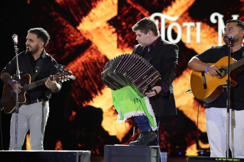 Finalmente, el ritmo cambió de latitud con Los Tekis y su folklore-fusión. Los jujeños transformaron el escenario «Osvaldo Sosa Cordero» en un carnaval andino. Si bien su presencia genera debates, el público estalló y coreó cada tema. Un gesto destacado fue la invitación a Ariel Báez (Los Alonsitos), quien con su acordeón se sumó para ejecutar una serie de clásicos litoraleños, sellando una integración cultural que la gente agradeció pidiendo «otra» incansablemente.