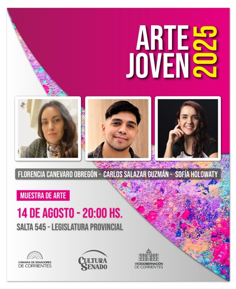 Con la coordinación del área Cultura Senado, la muestra tiene como protagonistas a jóvenes artistas correntinos: Florencia Canevaro Obregón, Carlos Zalazar Guzmán y Sofía Holowaty.