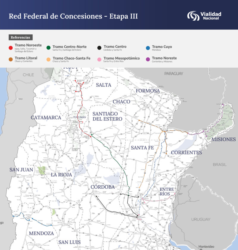 El Gobierno Nacional, impulsa este nuevo sistema para la operación y mantenimiento de más de 3.900 kilómetros de rutas nacionales, abarcando 11 provincias: Santa Fe, Córdoba, Entre Ríos, Corrientes, Chaco, Misiones, Santiago del Estero, Tucumán, Salta, Jujuy y Mendoza.