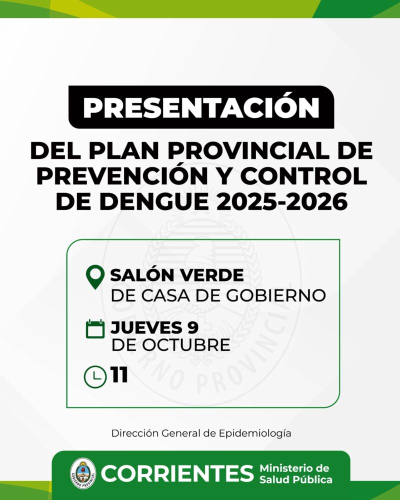 Este jueves a las 11, el Ministerio de Salud Pública presentará el Plan Provincial de Prevención y Control de Dengue. El acto, será en el salón Verde de Casa de Gobierno.