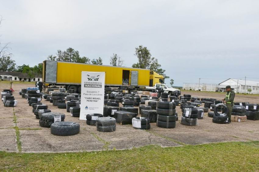 Efectivos de la Gendarmería secuestraron casi 1.500 neumáticos que eran trasladados de forma ilegal. Se trató de dos procedimientos sobre la Ruta Nacional N° 14, en jurisdicción de Paso de los Libres, donde los uniformados encontraron la mercadería escondida entre encomiendas.