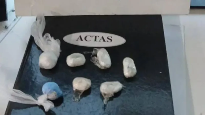 Según el parte oficial, los estupefacientes fueron lanzados desde la celda N.º 16, ubicada detrás del Módulo 4 del área de Mediana Seguridad II. Al advertir la situación, el personal penitenciario inspeccionó el lugar y encontró una media que contenía siete envoltorios de polietileno, seis de color blanco y uno de color azul, todos con distintas sustancias.