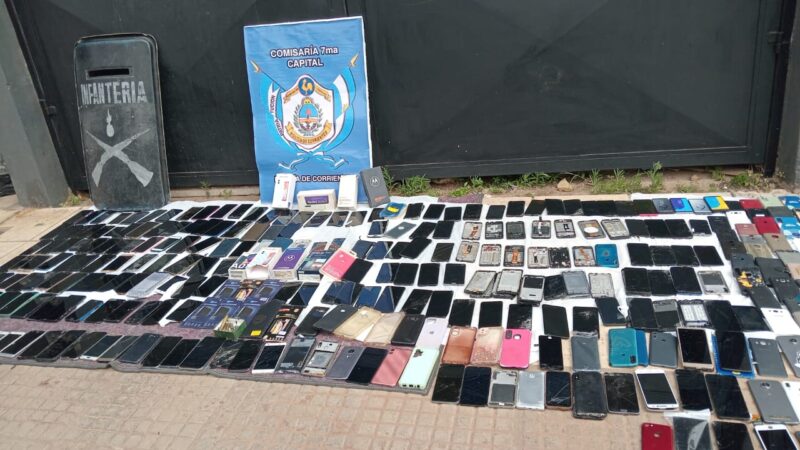 Tras un allanamiento realizado en la siesta de este lunes en el barrio «Piola de la Capital, la Policía de Corrientes desmanteló un presunto centro de acopio clandestino de teléfonos celulares y secuestró más de 100 aparatos de origen incierto, además de municiones de diversos calibres. Dos personas fueron demoradas durante el operativo.