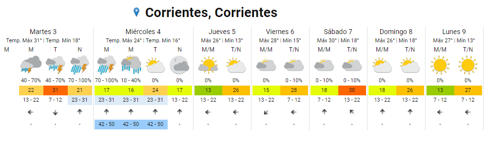 Se estiman valores de precipitación acumulada entre 40 y 70 mm, pudiendo ser superados de forma puntual.