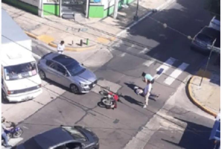 Una mujer terminó semi insconsciente luego de chocar con su motocicleta contra un automóvil en la esquina de Yrigoyen y Buenos de la Capital correntina, según informó una radio capitalina.