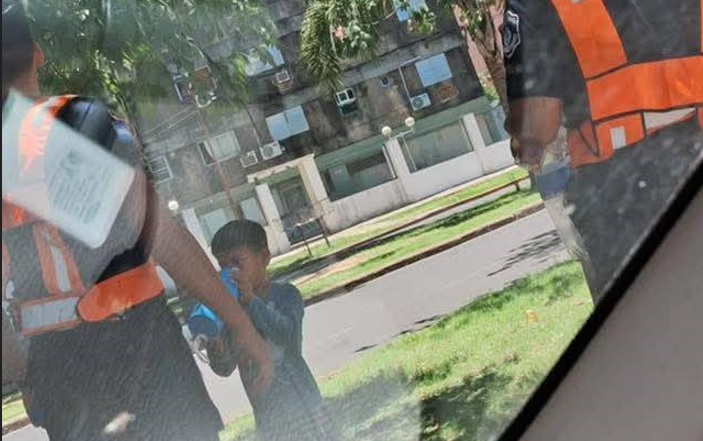 Cabe mencionar que el líquido tan vital para situaciones como esa, se encontraba en el termo que llevaban los solidarios efectivos. El gesto fue agradecido con hondo sentimiento por los ocasionales convidados que prosiguieron su labor de recolectar botellas descartables.