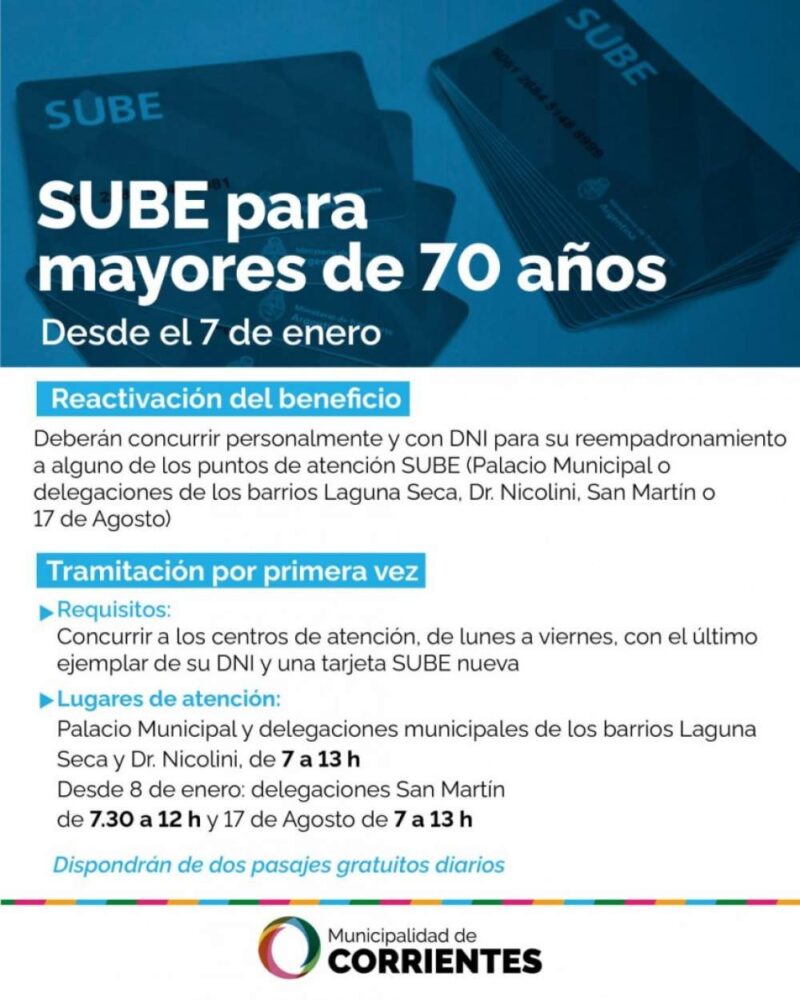 Las personas que deban realizar el trámite deberán concurrir con DNI y la tarjeta SUBE que utilizaba.