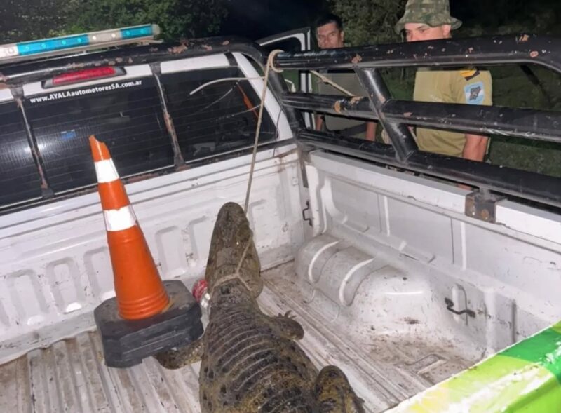 Un yacaré de gran tamaño fue hallado en el patio de una casa del barrio La Mansión, en la ciudad de Saladas, generando preocupación en la familia residente.