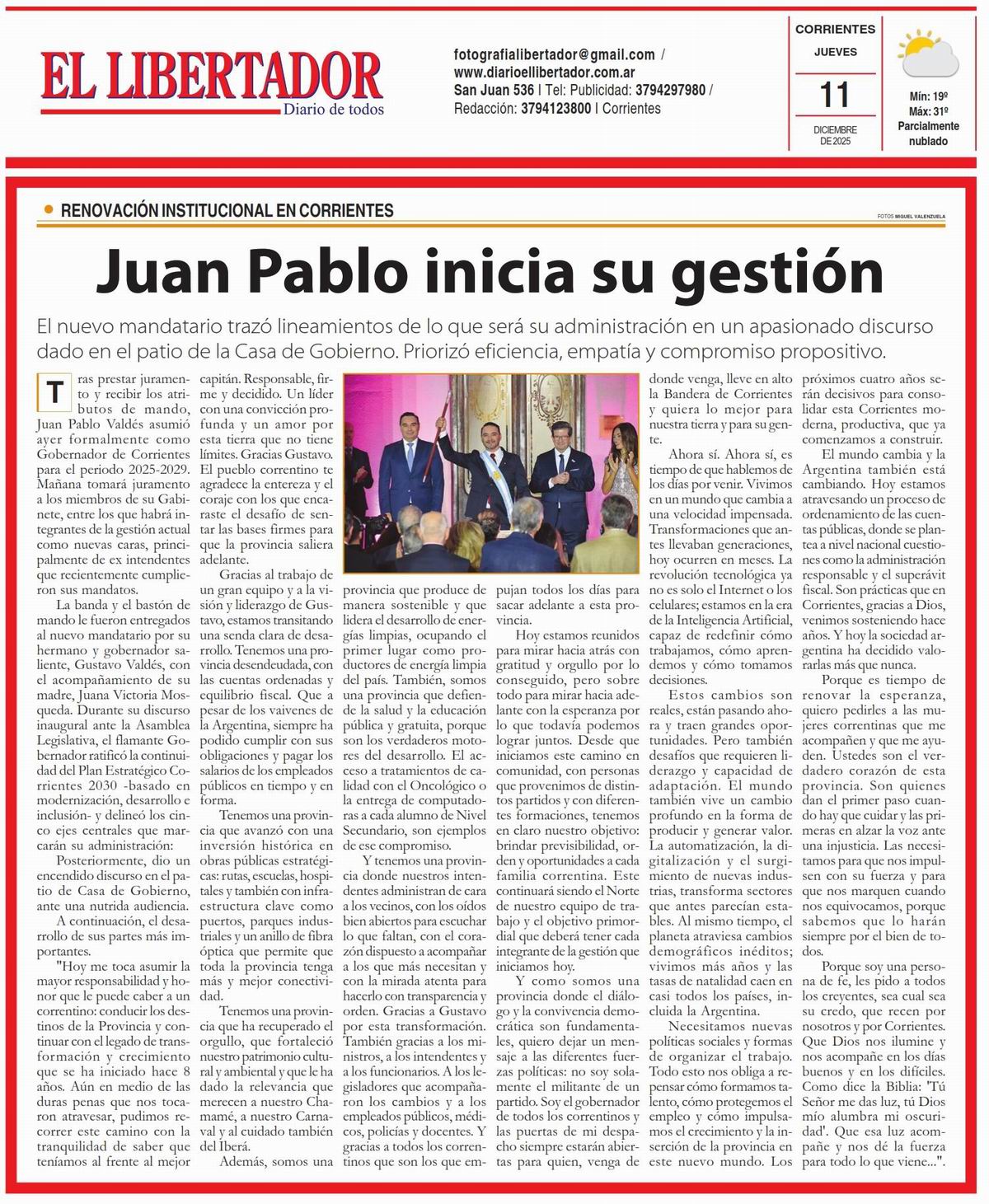 Juan Pablo asumió como Gobernador para el periodo 2025 -2029