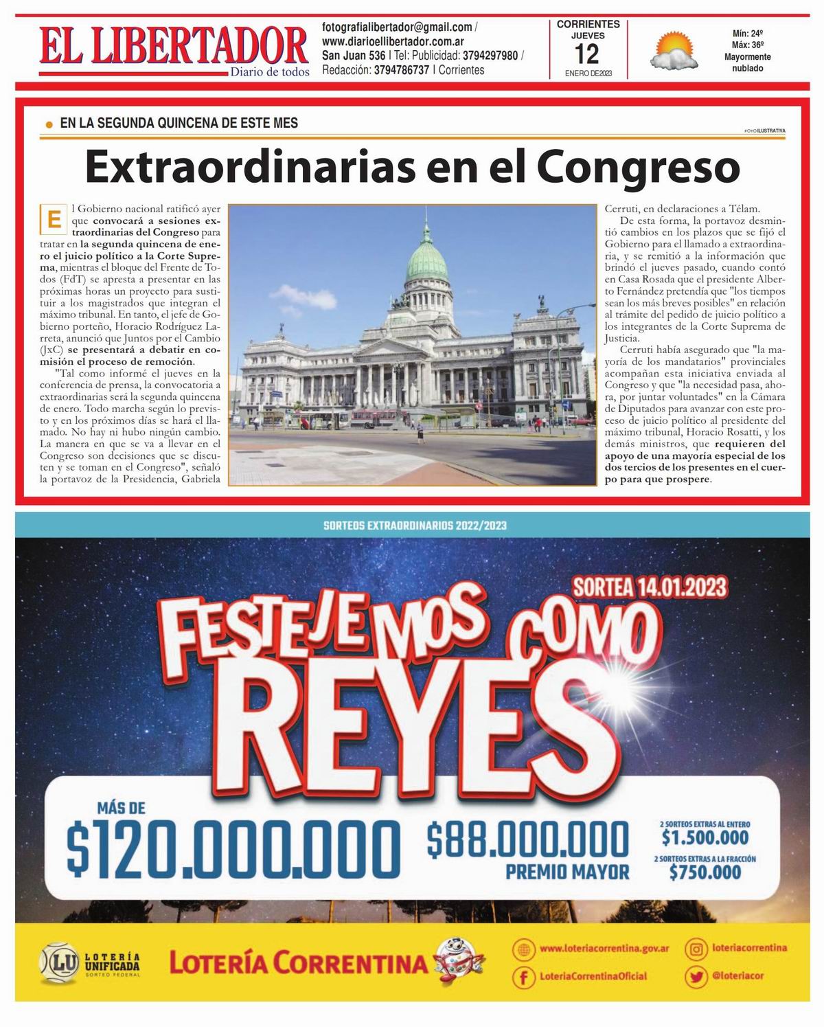 Portada » Tapa y Contratapa 10 de noviembre de 2022 » Tapa y Contratapa 12 de enero de 2023