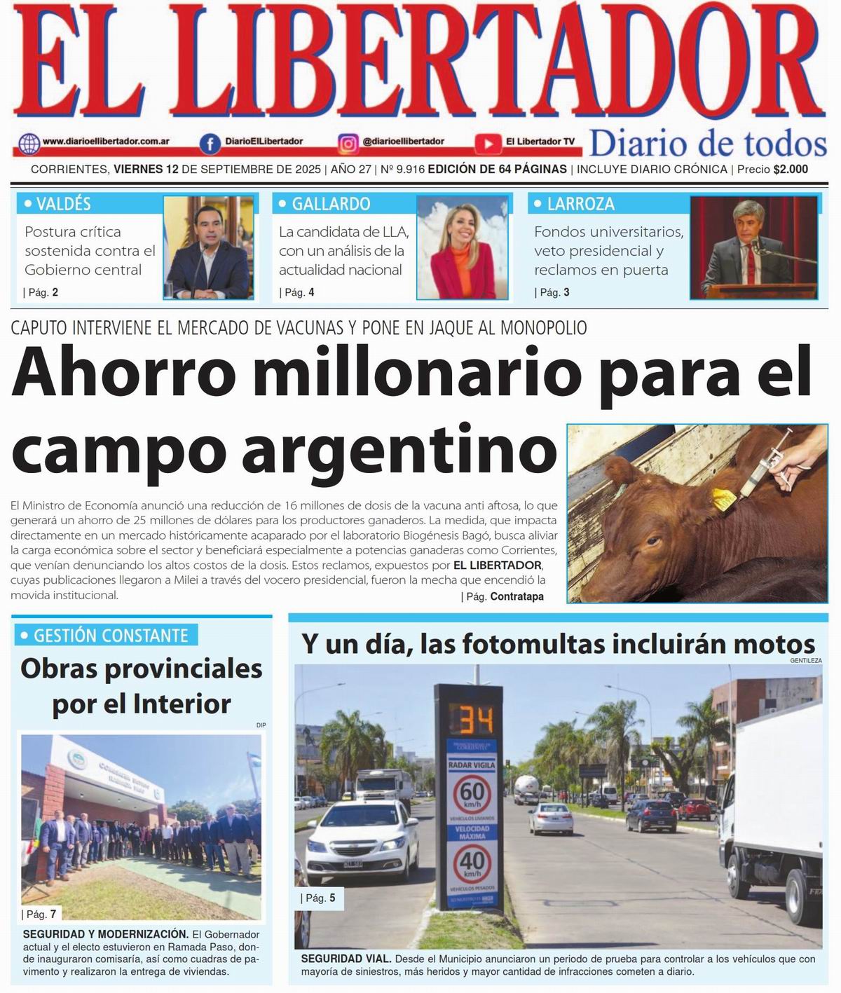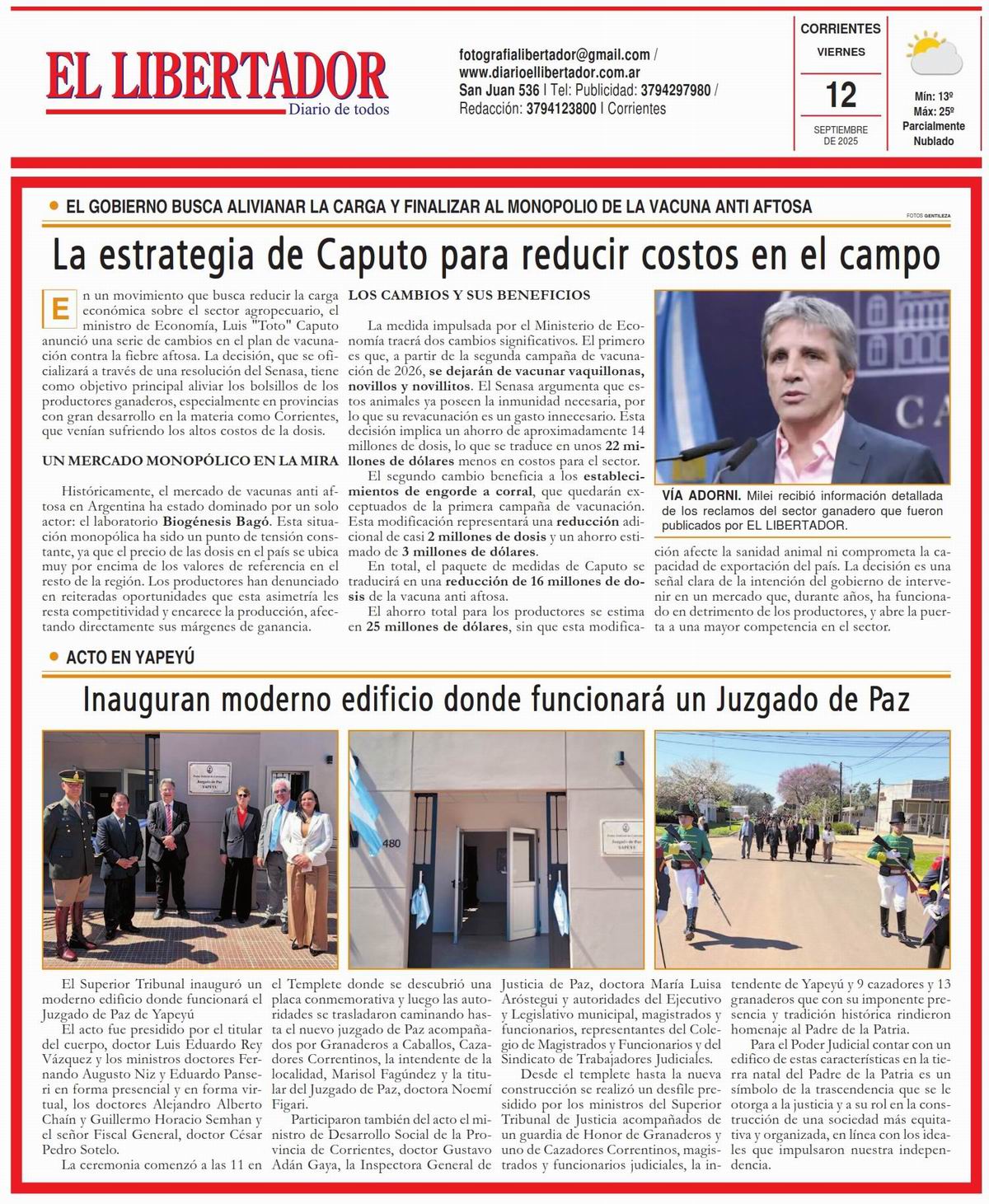 Tapa y Contratapa 12 de septiembre de 2025
