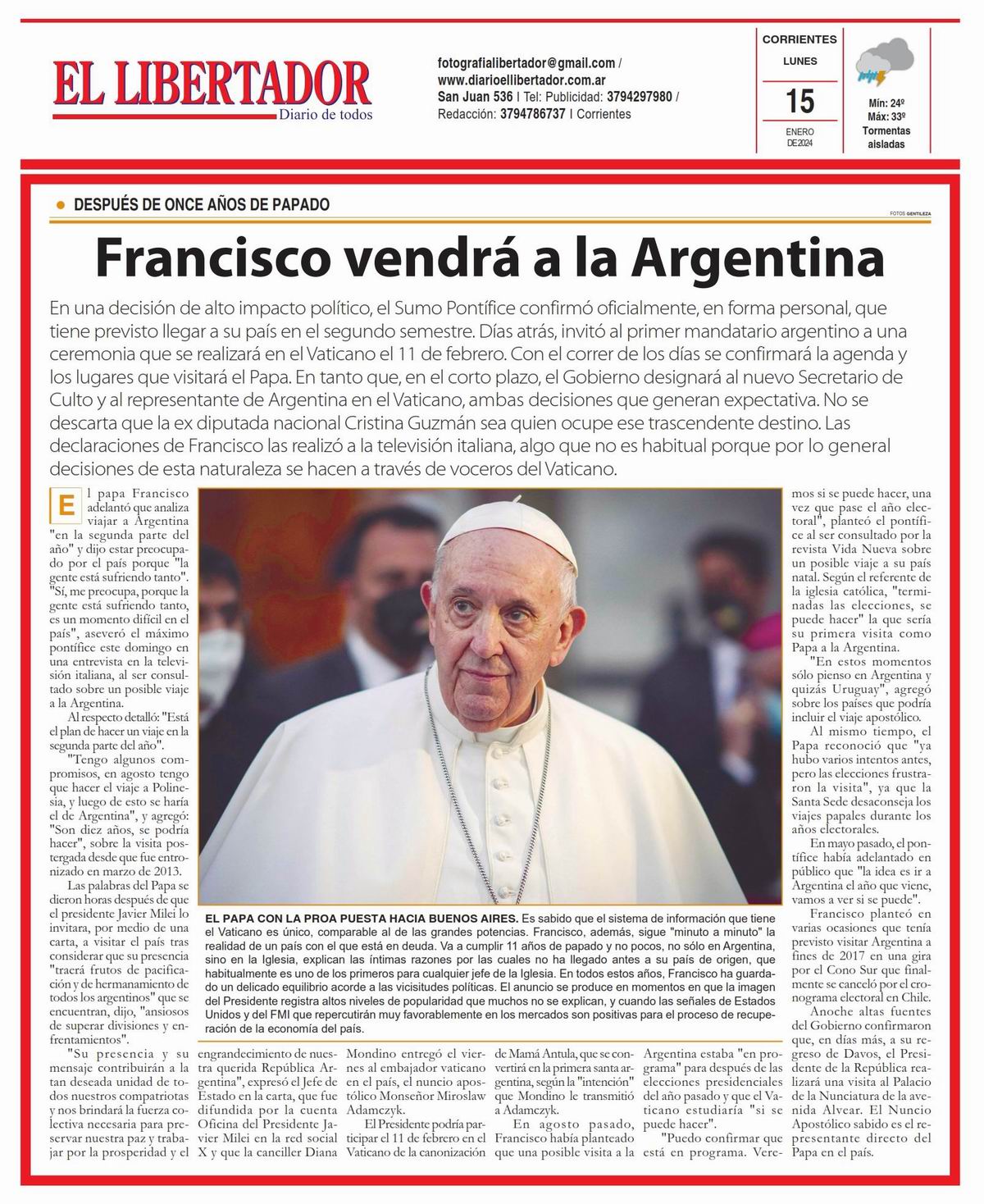 Portada » Tapa y Contratapa 10 de noviembre de 2022 » Tapa y Contratapa 15 de enero de 2024