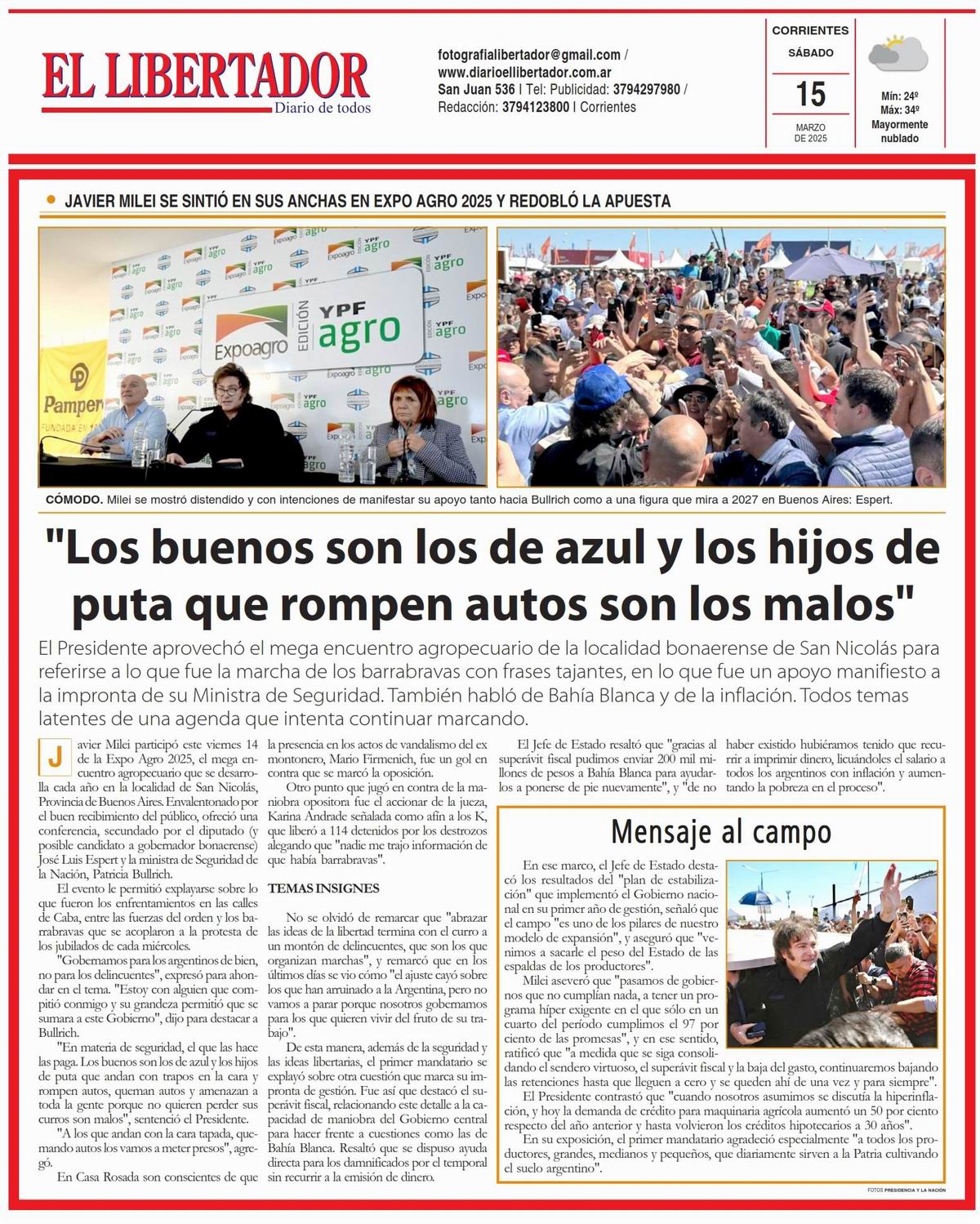 Portada » Tapa y Contratapa 10 de noviembre de 2022 » Tapa y Contratapa 15 de marzo de 2025