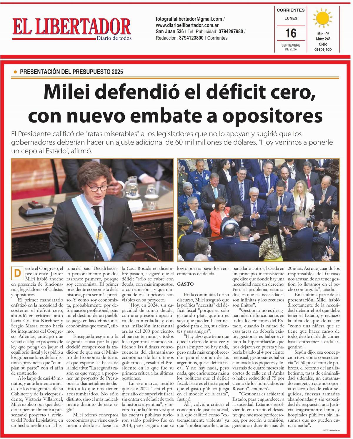 Portada » Tapa y Contratapa 10 de noviembre de 2022 » Tapa y Contratapa 16 de septiembre de 2024