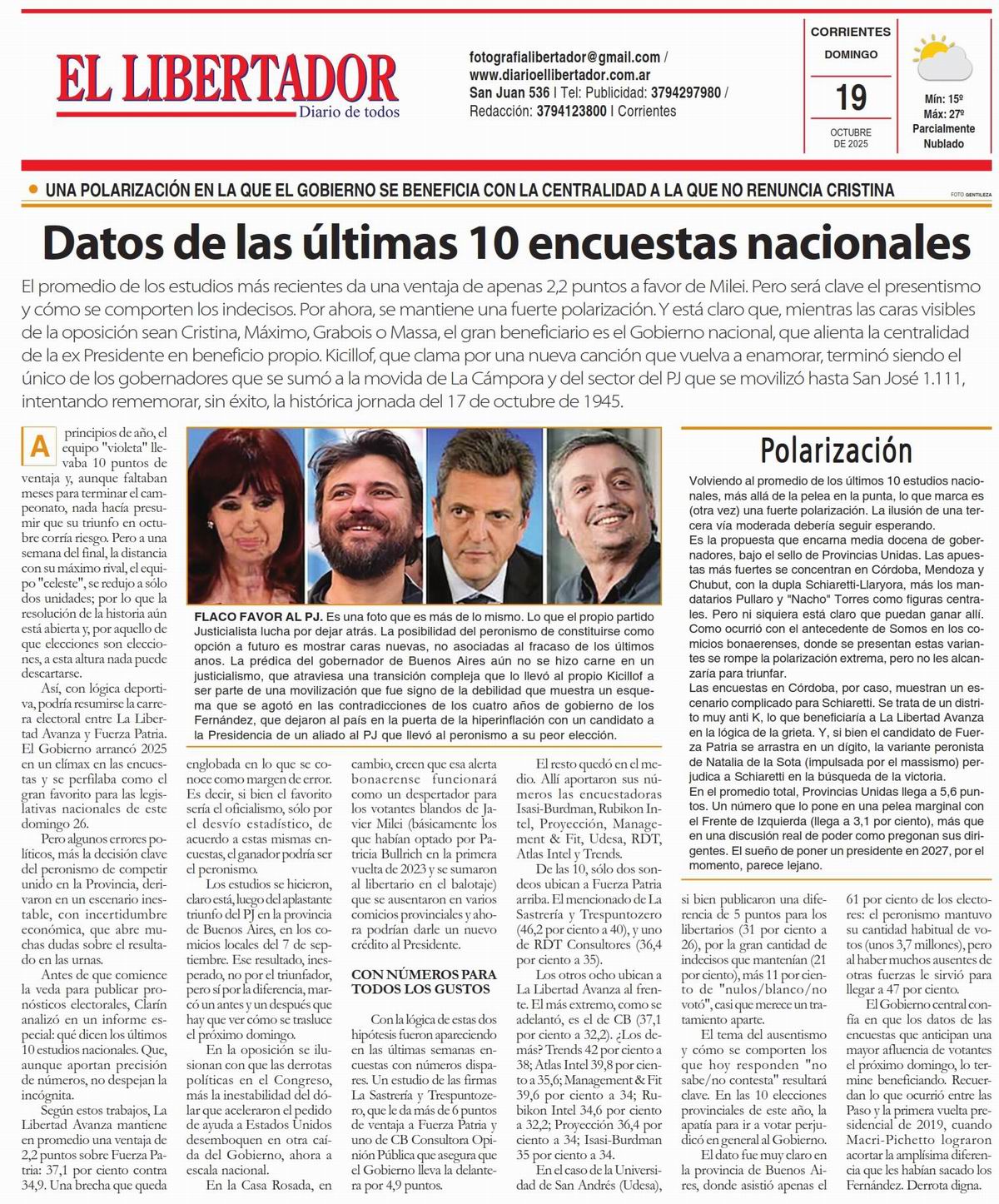 Tapa y Contratapa 19 de octubre de 2025
