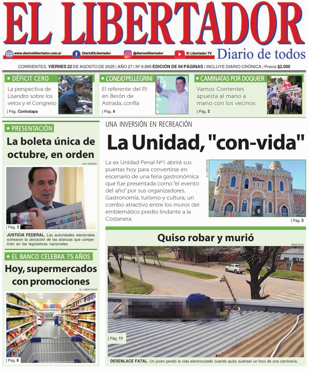 Portada » Tapa y Contratapa 10 de noviembre de 2022 » Tapa y Contratapa 22 de agosto de 2025