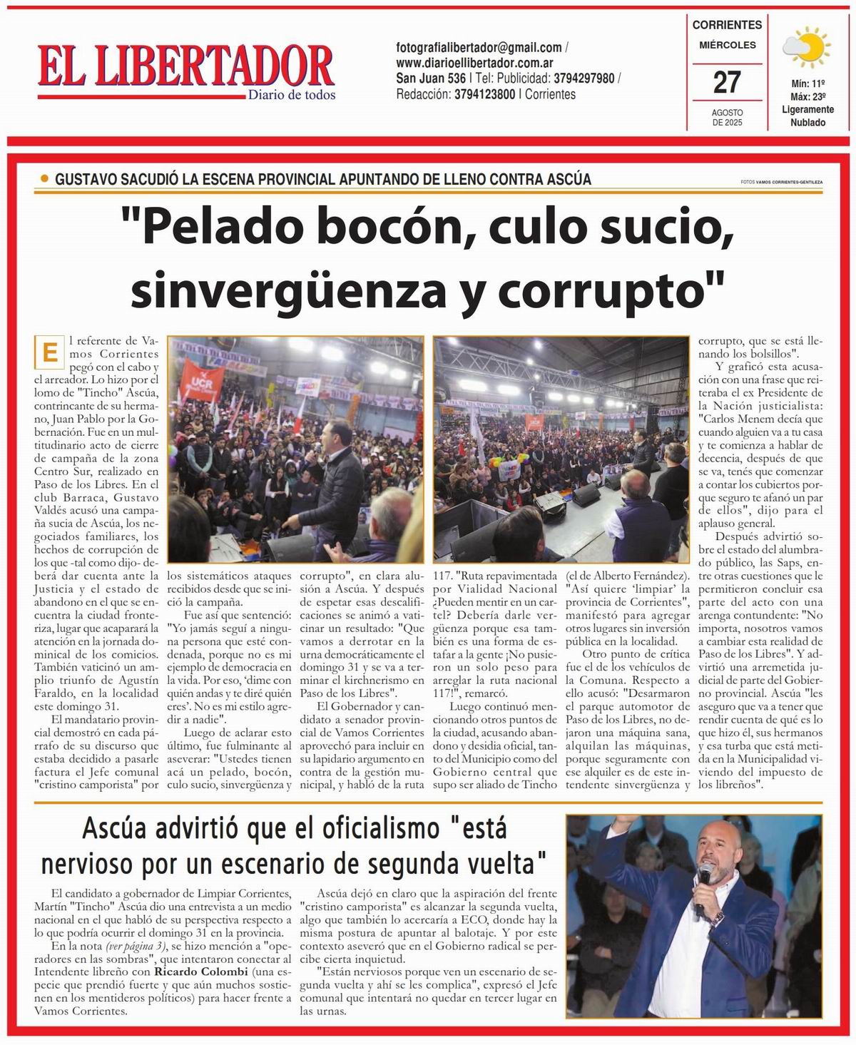 Gustavo Valdés: «Corrientes no va a canjear votos por dinero»