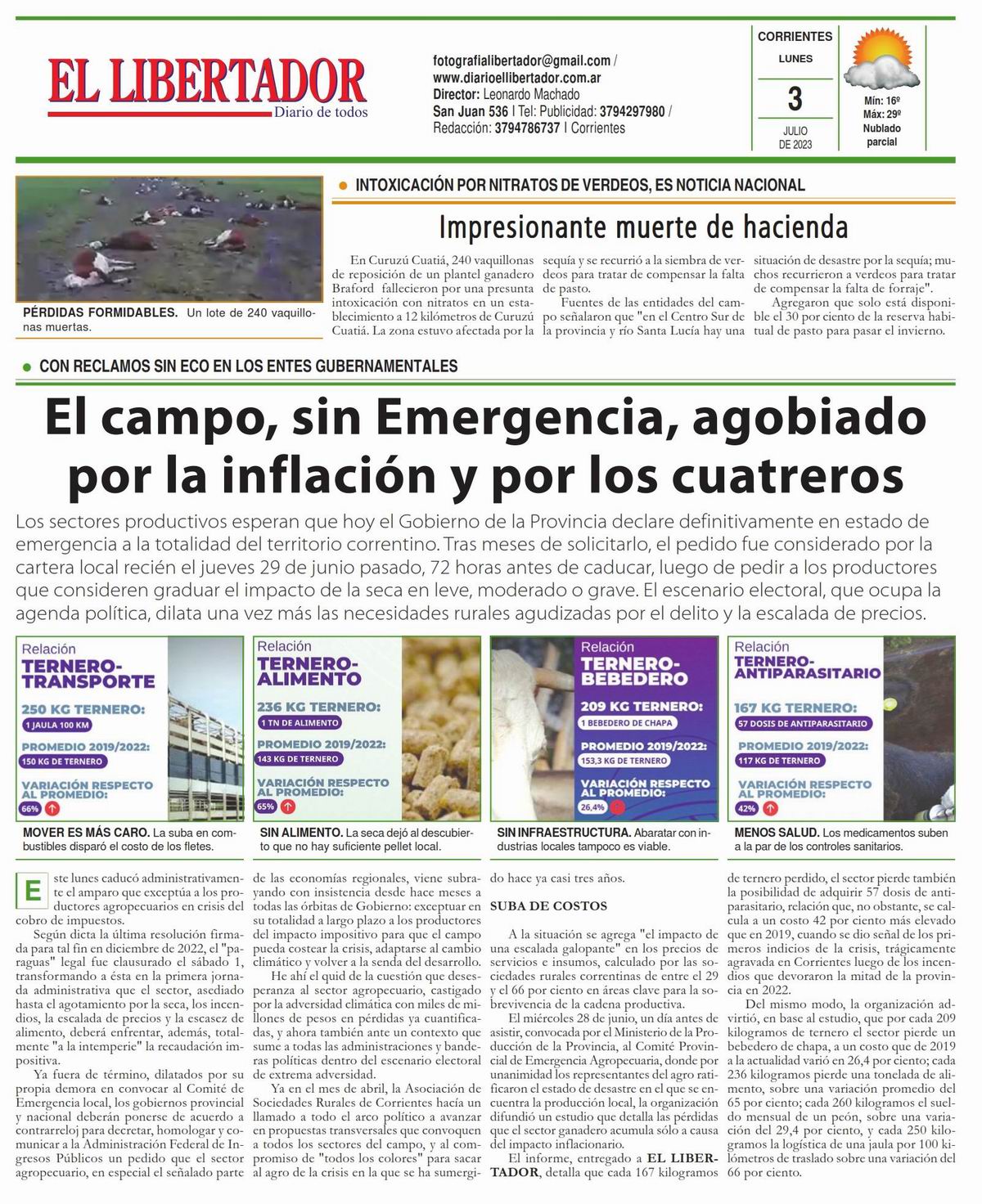 Portada » Tapa y Contratapa 10 de noviembre de 2022 » Tapa y Contratapa 3 de julio de 2023