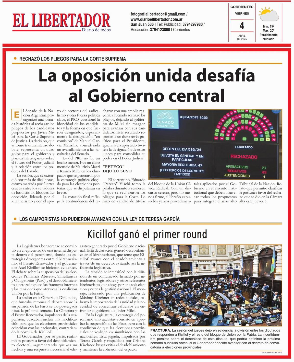 Tapa y Contratapa 4 de abril de 2025
