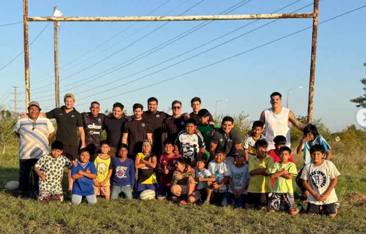 Antes de tomar el empalme a Clorinda, divisaron a un grupo de chicos jugando al rugby. No dudaron en frenar y bajar del colectivo, para compartir el momentojunto a los chicos, que con tanto esfuerzo, sacrificio y pasión, desplegaban la actividad en ese rincón de la Argentina.