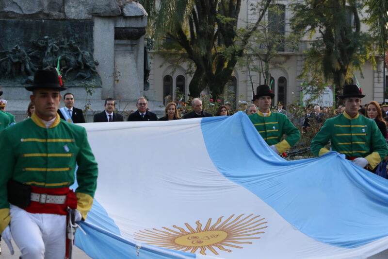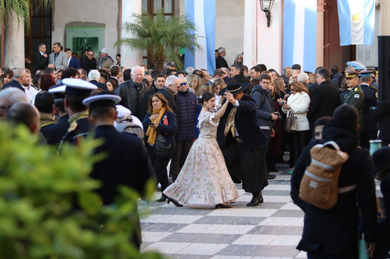 Ambos funcionarios presidieron el izamiento de la bandera en la plaza 25 de Mayo y luego compartieron un chocolate patrio en la Casa de Gobierno con los vecinos que se acercaron a festejar esta fecha. También juntos asistieron al Te Deum en la iglesia La Merced y finalmente disfrutaron del desfile de instituciones escolares, civiles y militares.