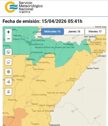 El Servicio Meteorológico Nacional (SMN) actualizó sus niveles de vigilancia, retirando el alerta naranja para el norte provincial pero sosteniendo un alerta amarillo que cubre gran parte del territorio para este miércoles.