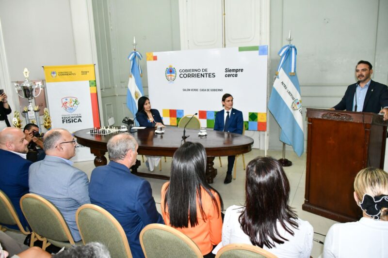 El gobernador Juan Pablo Valdés presidió el lanzamiento de las Competencias Deportivas Interescolares 2026, una iniciativa donde estudiantes correntinos tendrán la oportunidad de enriquecer su formación a través del trabajo en equipo, respeto y el juego limpio.