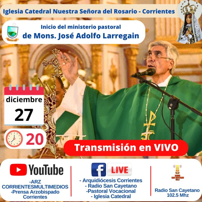 En el atrio de la iglesia Catedral Nuestra Señora del Rosario de la ciudad de Corrientes, este viernes 27, a las 20, se celebrará una misa que marcará el inicio del ministerio pastoral de monseñor José Adolfo Larregain, OFM, como Arzobispo Coadjutor de la Arquidiócesis de Corrientes.