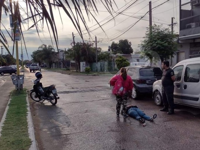 Dos mujeres que iban a bordo de una motocicleta por calle Las Heras de la ciudad de Corrientes, en inmediaciones de avenida Santa Rosa protagonizaron un insólito siniestro vial. Es que la acompañante se descompensó y cayó del rodado, lo que hizo perder el equilibro a la conductora y ambas terminaron en el piso.